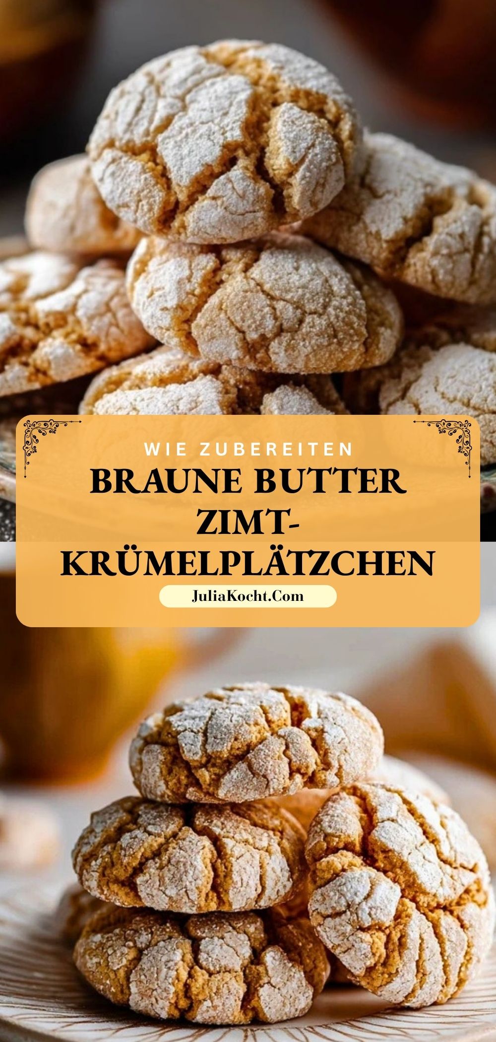Diese Braune Butter Zimt-Krümelplätzchen vereinen nussige Aromen von gebräunter Butter mit wärmendem Zimt. Außen sind sie knusprig und innen wunderbar weich – ein Fest für alle Plätzchenliebhaber!