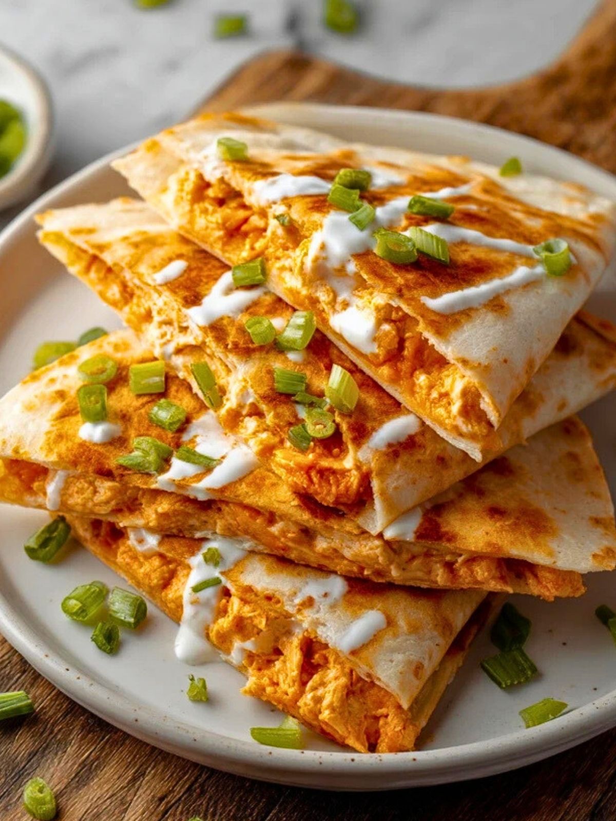 - Buffalo-Sauce – Gibt der Quesadilla die charakteristische Schärfe und Würze.