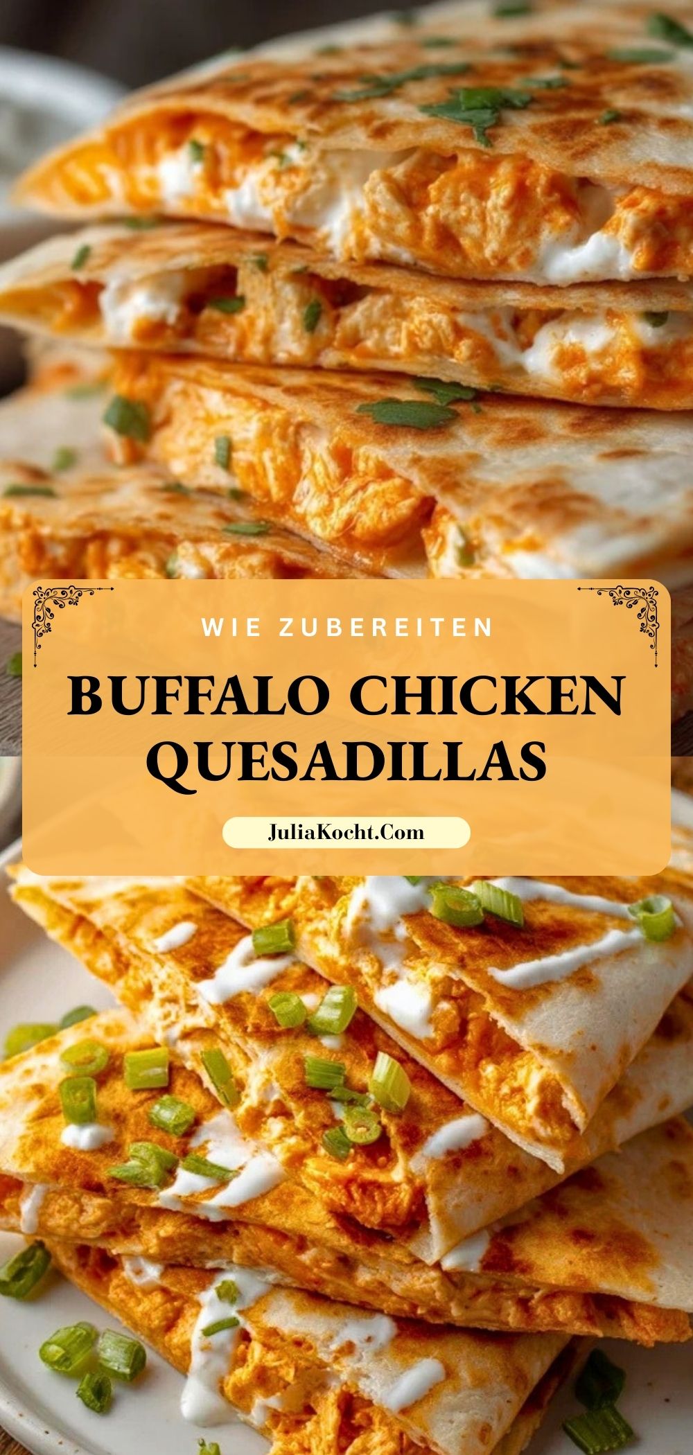 Saftige Buffalo Chicken Quesadillas vereinen würziges Hähnchen, scharfe Buffalo-Sauce und viel geschmolzenen Käse zwischen knusprigen Tortillas. Perfekt als schnelles Abendessen oder als Fingerfood!