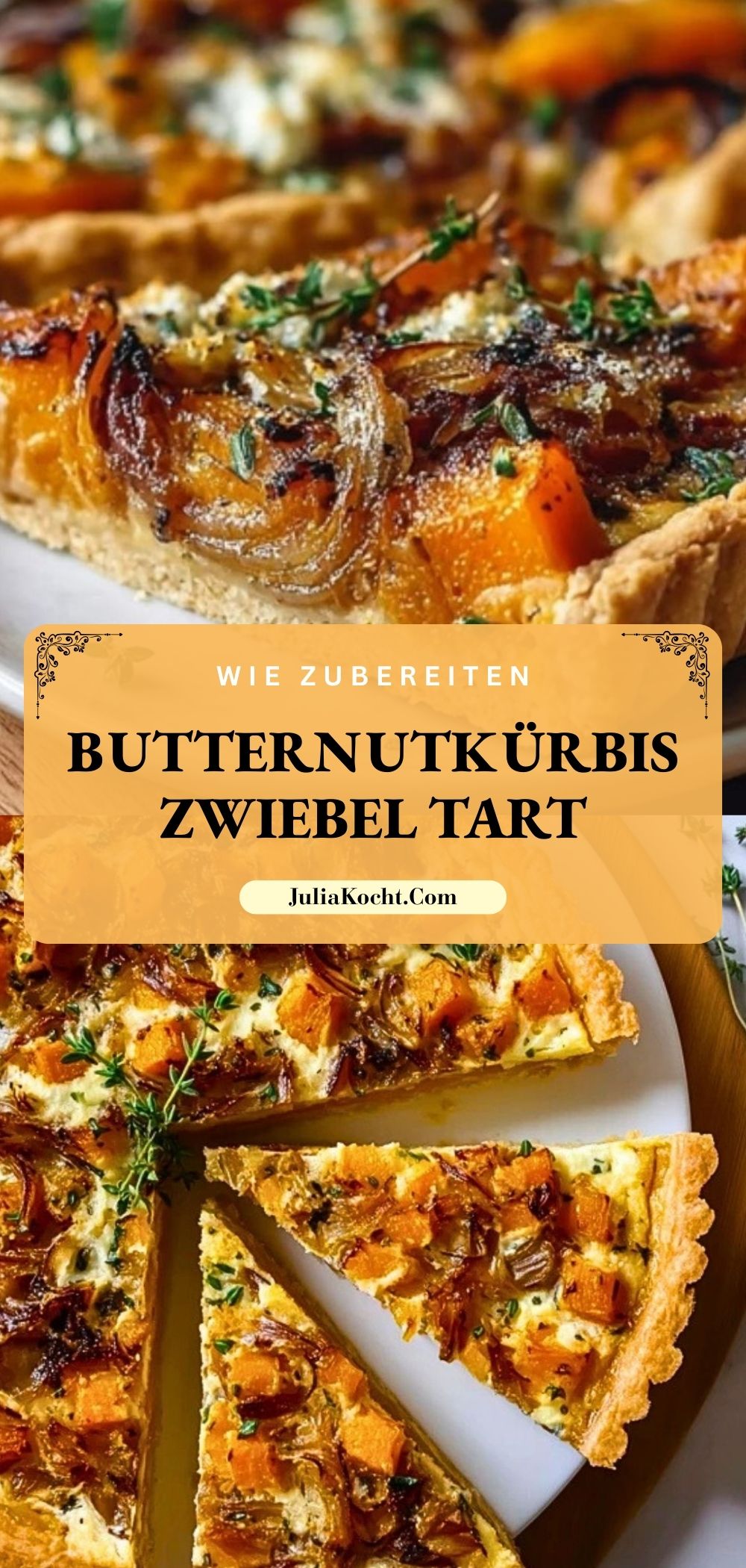 Eine herzhafte Tarte mit geröstetem Butternutkürbis, karamellisierten Zwiebeln, cremigem Ziegenkäse und frischem Thymian auf knusprigem Mürbeteig. Perfekt für Herbst und Winter, schmeckt warm und kalt – ideal für Gäste, Mealprep oder als besonderes Abendessen.