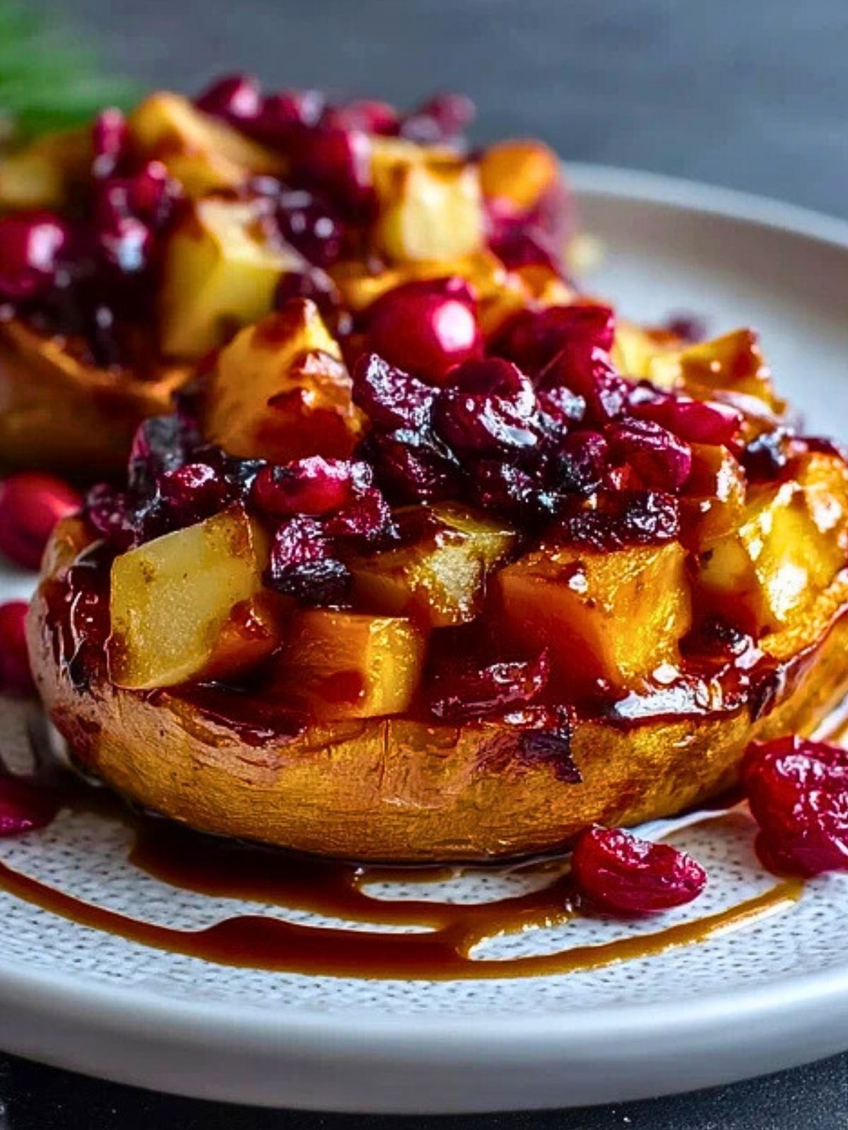 Cremige, zweimal gebackene Süßkartoffeln, gefüllt mit einer fruchtigen Mischung aus Apfel, Cranberries, Zimt und einem Hauch Zitrone. Perfekt als festliche Beilage oder vegetarisches Hauptgericht – einfach vorzubereiten und wunderbar aromatisch!