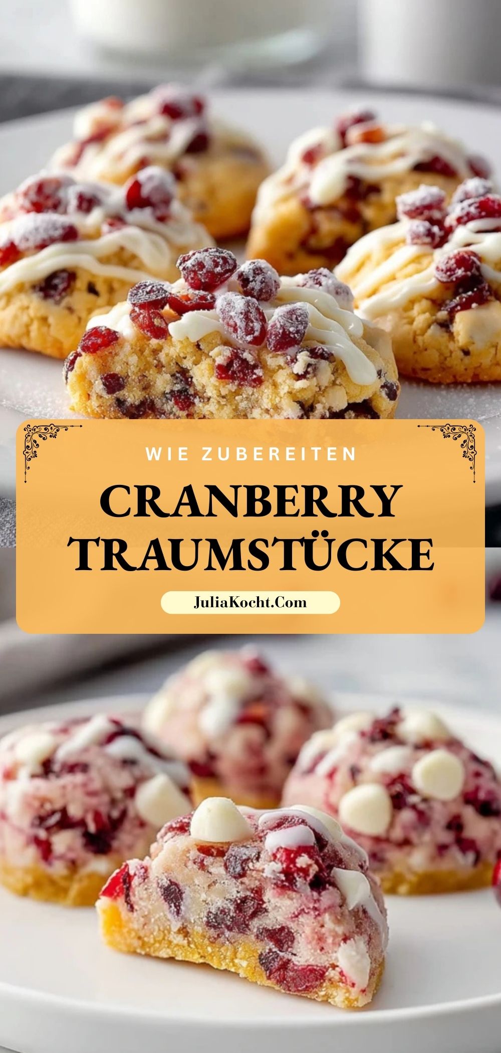 Cranberry Traumstücke sind kleine, mürbe Kekse mit fruchtigem Cranberry-Kick. Perfekt für jede Jahreszeit, einfach zu backen und ein Genuss zu Kaffee, Tee oder als Geschenk!