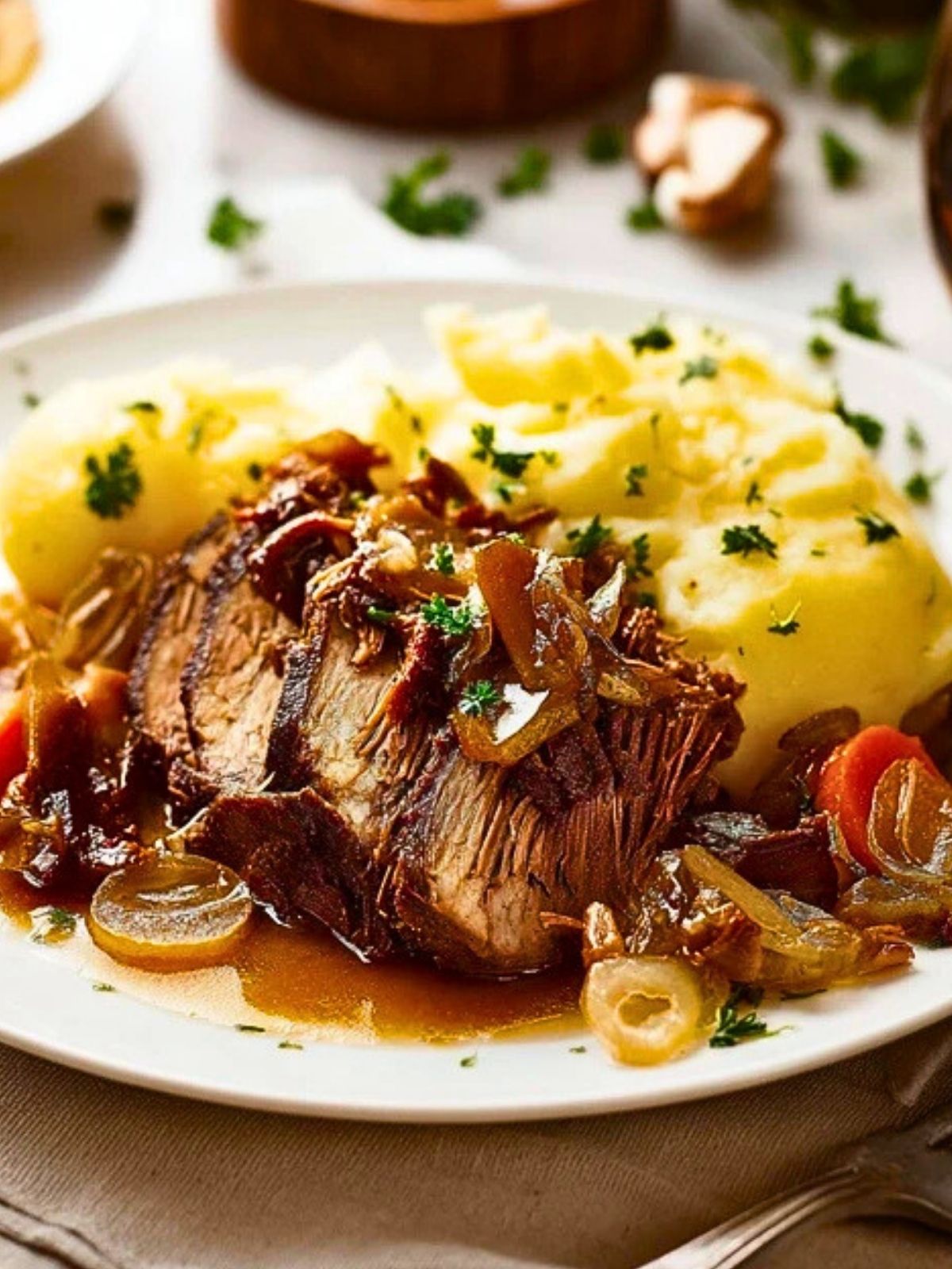Ob für den Sonntagsbraten mit der Familie oder als Highlight eines Feiertags: Diese geschmorte Rinderbrust überzeugt mit ihrem intensiven Geschmack und unkomplizierter Zubereitung. Das Beste daran? Die Zeit arbeitet für dich – während das Fleisch langsam schmort, hast du Muße für Beilagen und Gäste.