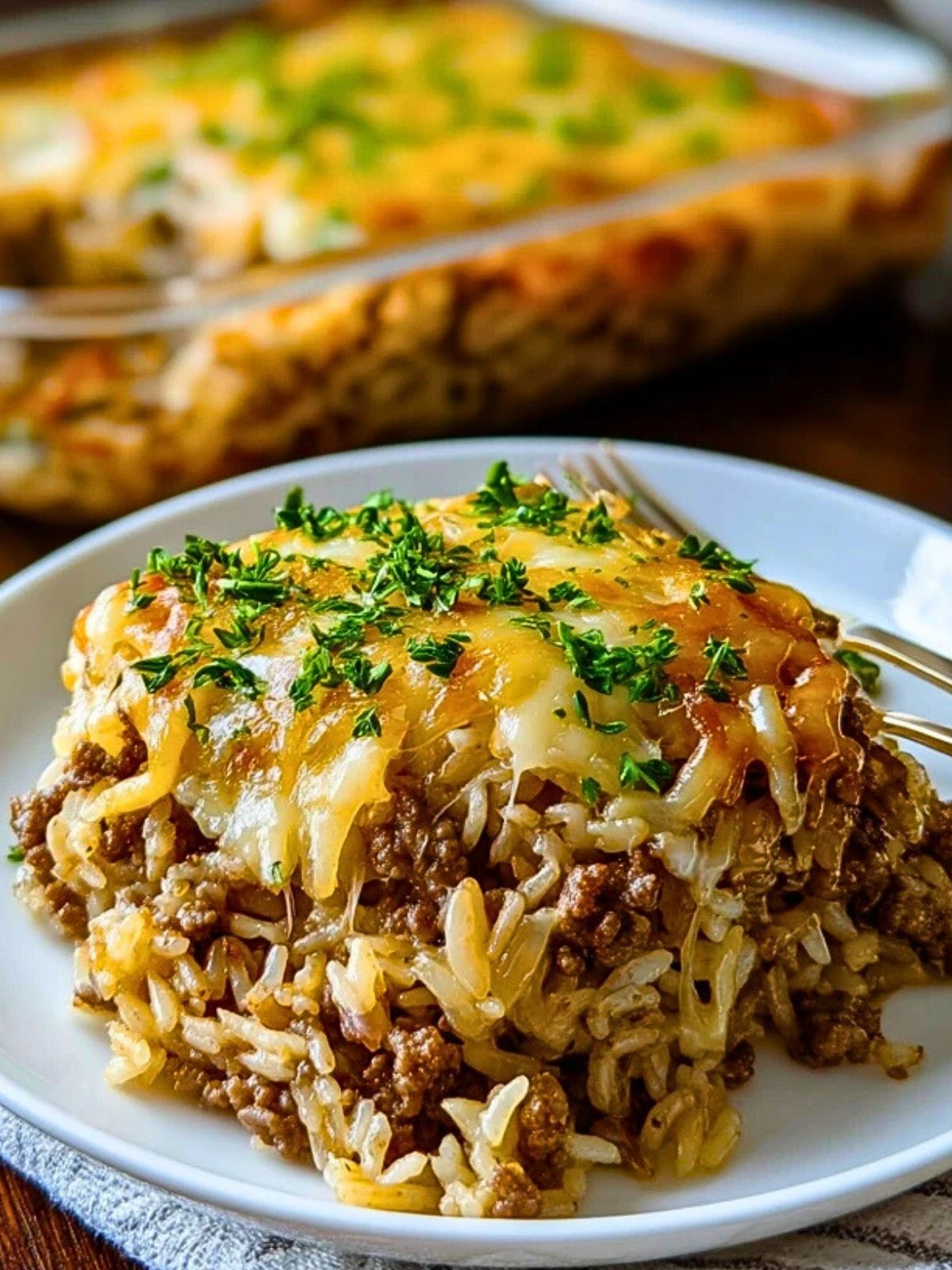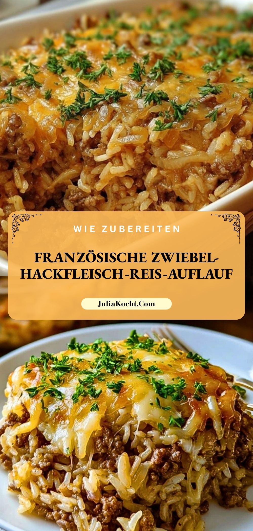 Herzhafter französischer Zwiebel-Hackfleisch-Reis-Auflauf: würziges Rinderhack, süßliche Zwiebeln, cremiger Reis und goldener Käse. Einfach gemacht, wunderbar aromatisch und ideal zum Vorbereiten – das perfekte Wohlfühlessen für die ganze Familie.
