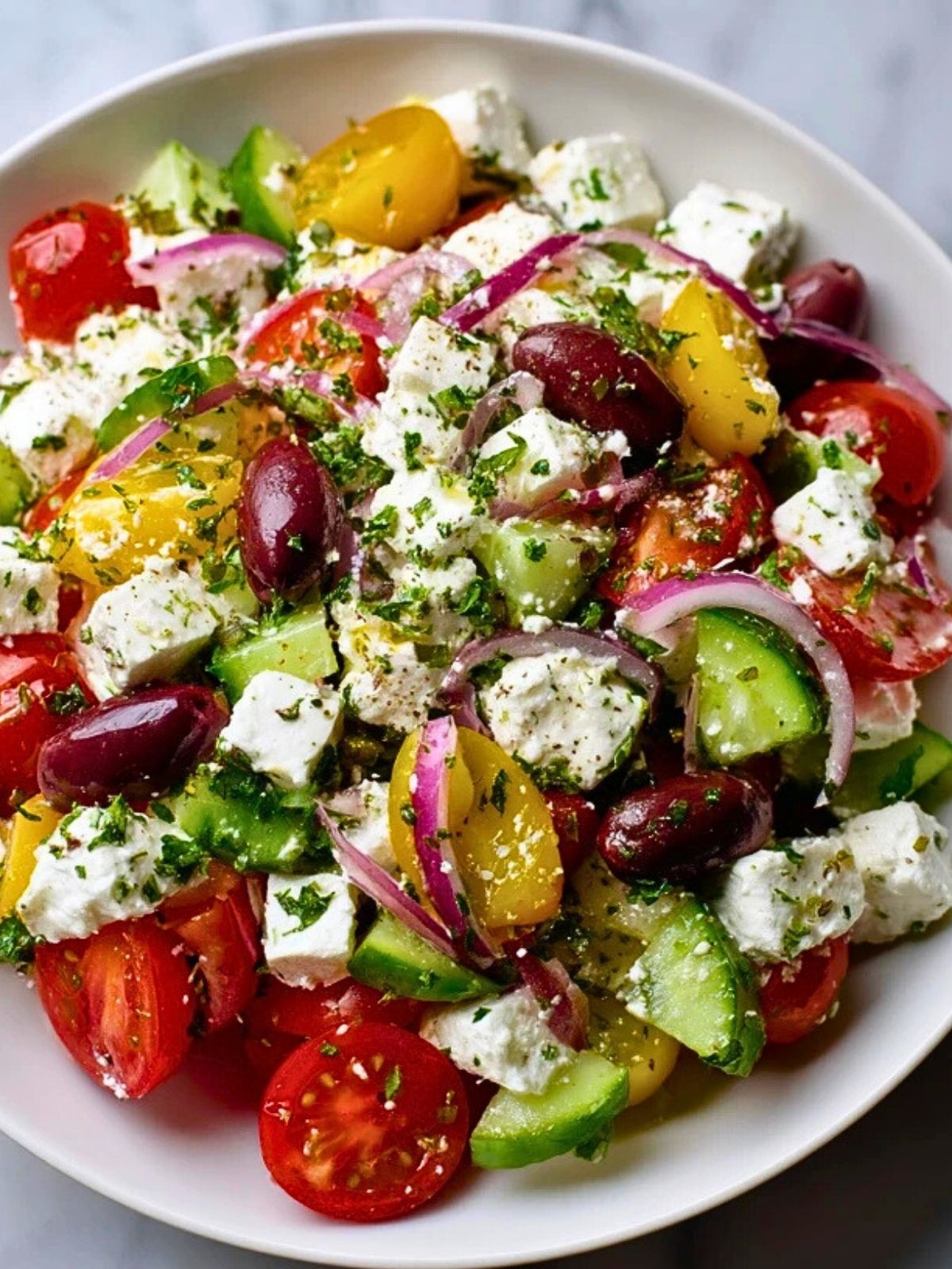 - Griechischer Bauernsalat mit Feta und knackigem Gemüse.