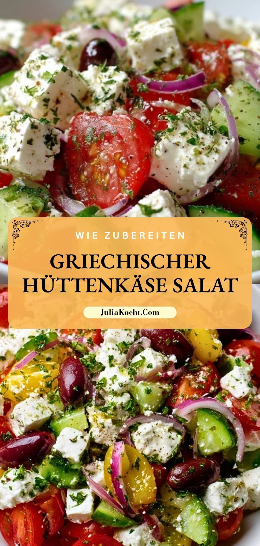 Ein frischer, mediterraner Salat mit Hüttenkäse, knackigem Gemüse und würzigen Oliven. Perfekt als leichtes Mittagessen, als Beilage zum Grillen oder einfach für ein gesundes Abendessen. Erfrischend, proteinreich und in weniger als 20 Minuten zubereitet!