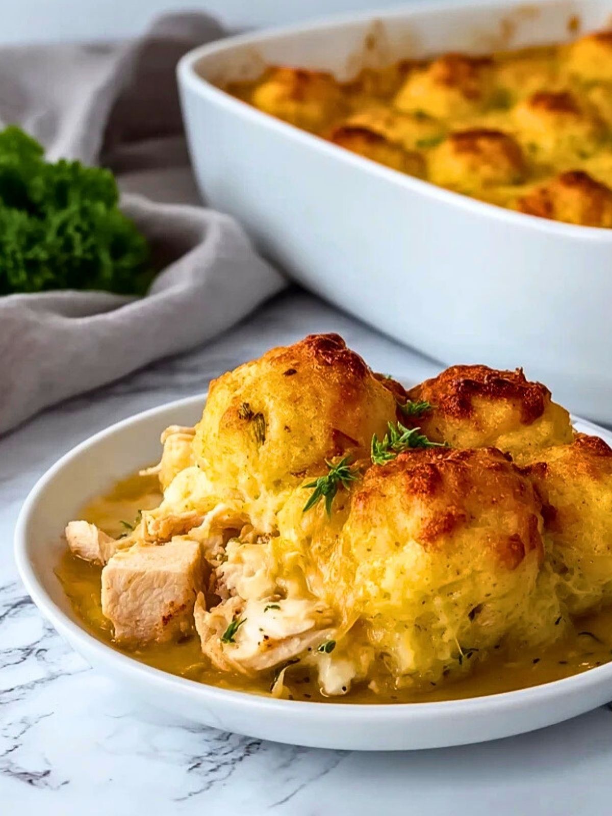Ein herzhafter Hähnchen und Knödel Auflauf mit zartem Hähnchenfleisch, buntem Gemüse und fluffigen Knödeln in cremiger Sauce. Perfekt für Familienessen oder Gäste – unkompliziert, sättigend und voller Geschmack!