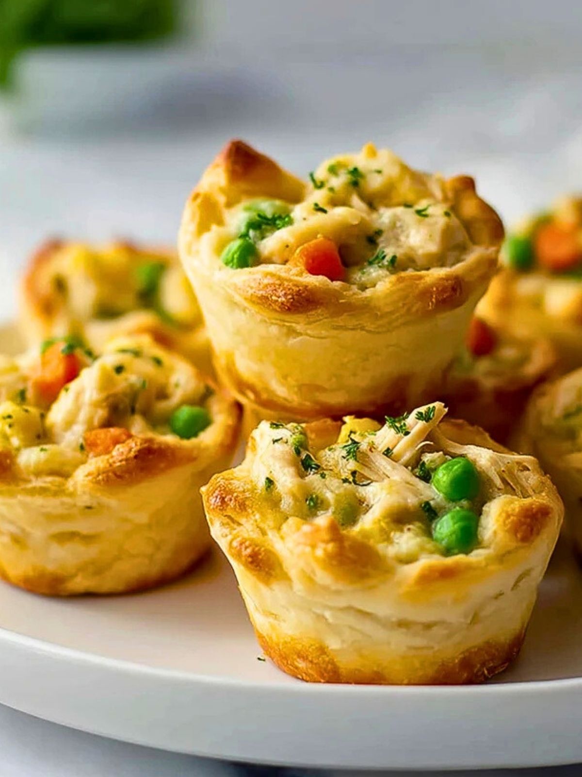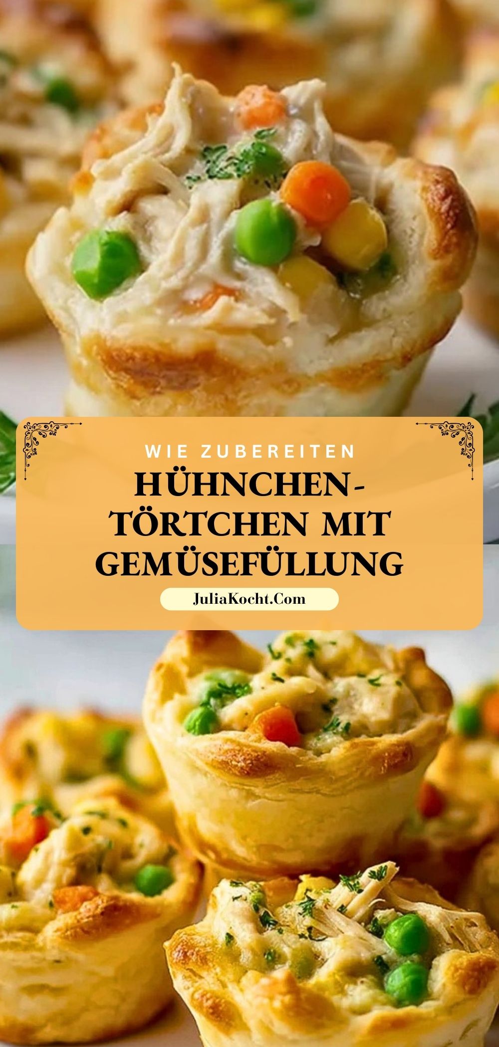 Diese Hühnchen-Törtchen mit Gemüsefüllung kombinieren saftiges Hähnchen, buntes Gemüse und cremige Sauce in einem knusprigen Blätterteig. Ideal als Snack, für Buffets oder ein schnelles Abendessen!