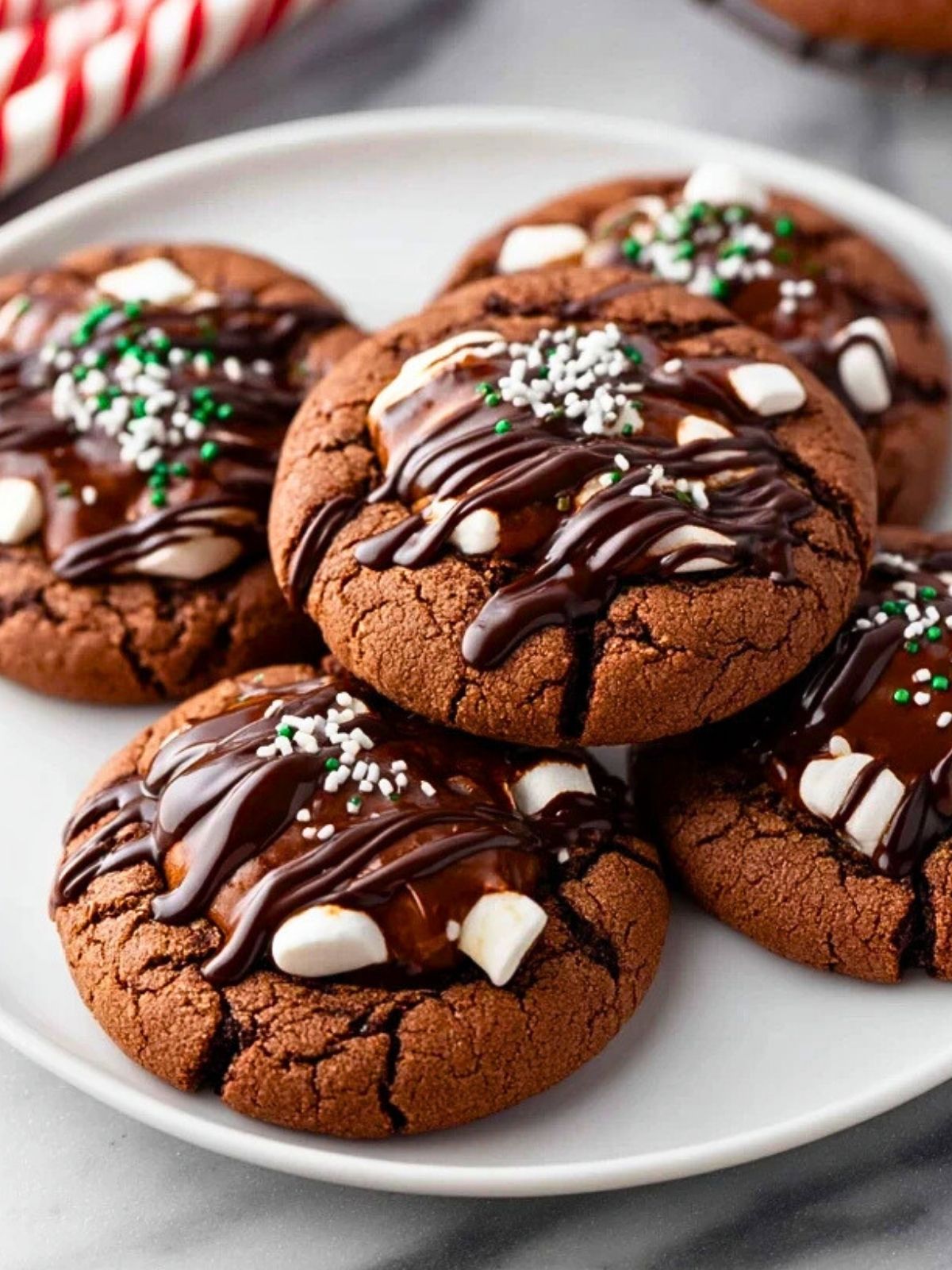 Diese Kekse vereinen alles, was man an heißer Schokolade liebt – weicher Schokoteig, zart schmelzender Marshmallow, glänzende Schokoglasur und bunte Streusel. Perfekt für Wintertage und als Hingucker auf jeder Keksplatte.