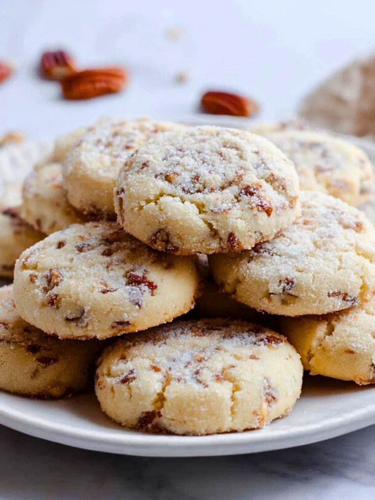 Zarte, mürbe Pekannuss-Plätzchen mit aromatisch gerösteten Pekannüssen. Perfekt zum Kaffee, als Geschenk oder einfach für den süßen Genuss zwischendurch!