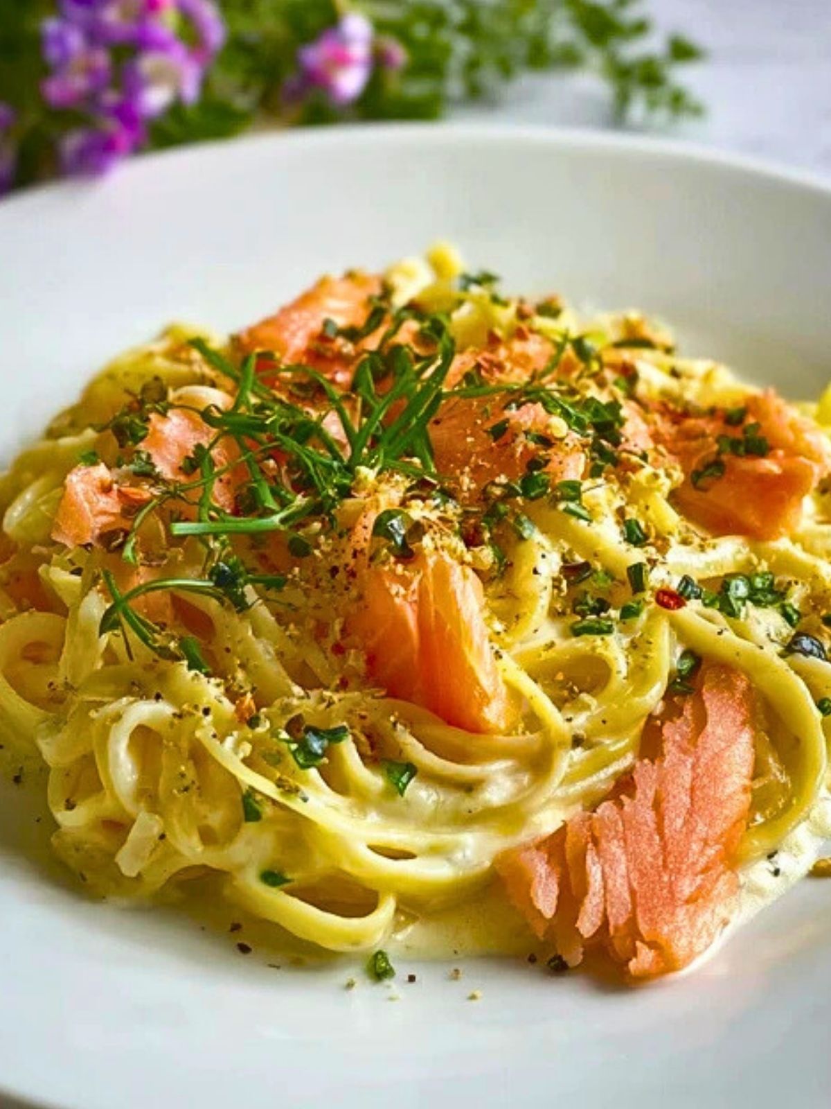 Cremige Pasta, feiner Räucherlachs und frische Kräuter – diese Carbonara-Variante bringt Abwechslung in die schnelle Alltagsküche und schmeckt gleichzeitig herrlich raffiniert. Perfekt für ein unkompliziertes Mittag- oder Abendessen mit besonderem Flair.
