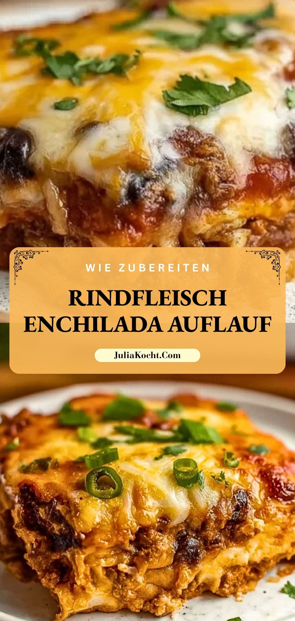 Dieser Rindfleisch Enchilada Auflauf bringt die würzigen Aromen Mexikos direkt auf deinen Tisch – mit zartem Rindfleisch, geschmolzenem Käse, feinen Gewürzen und einem Hauch von Frische durch Koriander. Perfekt für ein geselliges Abendessen, einfach vorzubereiten und unwiderstehlich lecker!