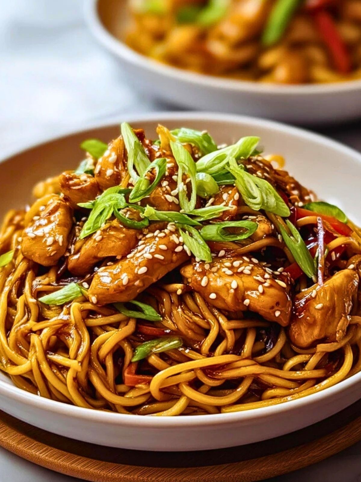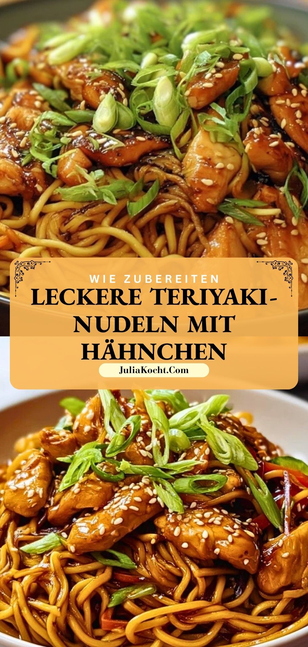 Schnelle Teriyaki-Nudeln mit zartem Hähnchen, umhüllt von einer süß-würzigen Sauce. Perfekt für den schnellen Asia-Genuss zu Hause!