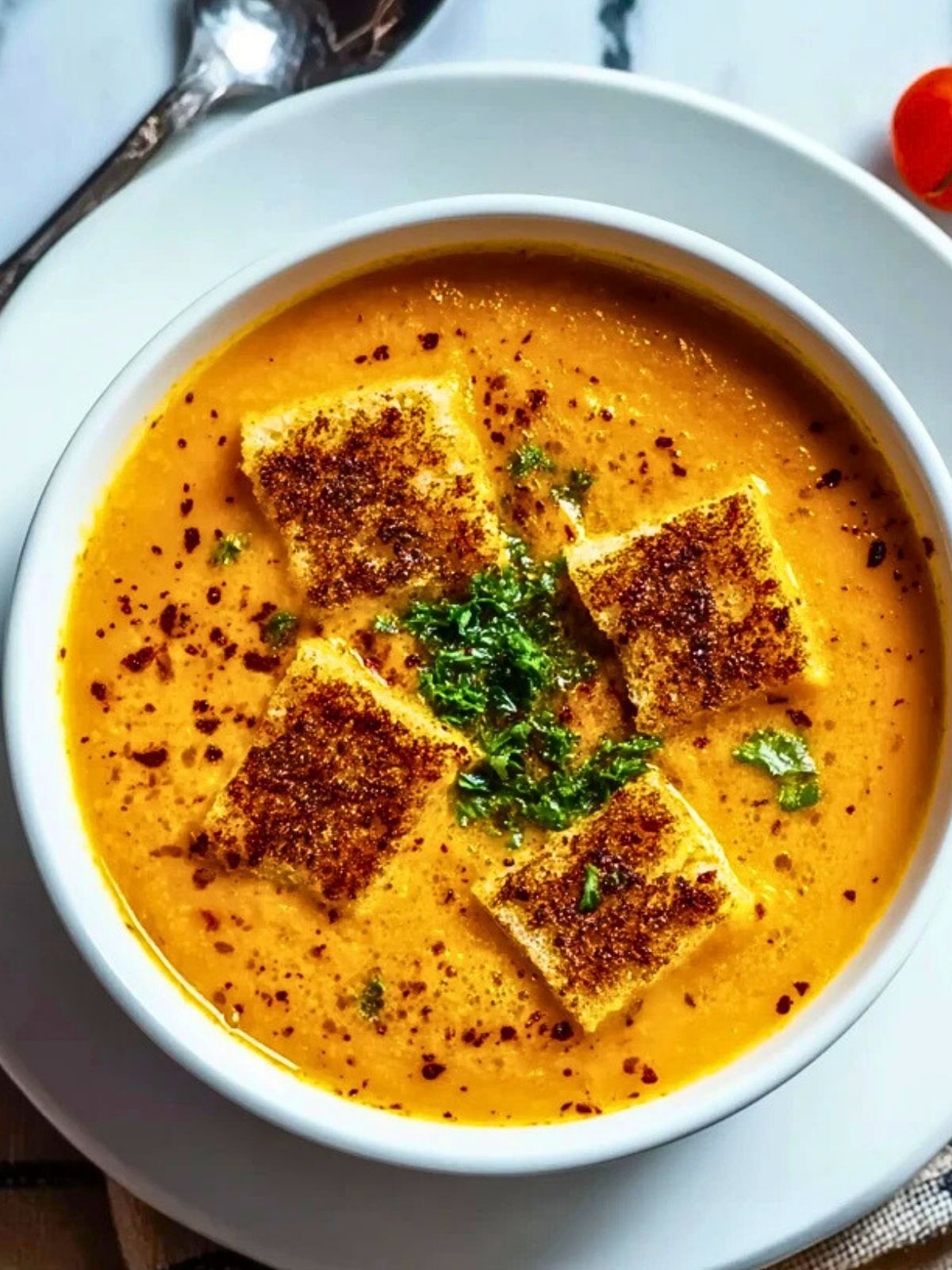 Diese cremige und würzige Kürbissuppe bringt mit ihrer pikanten Note und samtigen Textur sofort Gemütlichkeit auf den Tisch. Die Kombination aus Kürbis, Karotten und orientalischen Gewürzen sorgt für ein wärmendes Wohlfühlessen – ideal für kalte Tage und perfekt vorzubereiten. Getoppt mit knusprigen Croutons ein echtes Highlight!